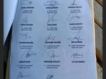 BURSEL, BABETO.ID – Situasi di Desa Oki Lama, Kecamatan Namrole, Kabupaten Buru Selatan, kembali memanas setelah ditemukan berkas bodong yang diduga sebagai kesepakatan pergantian Penjabat (PJ) Roing Lesnussa.