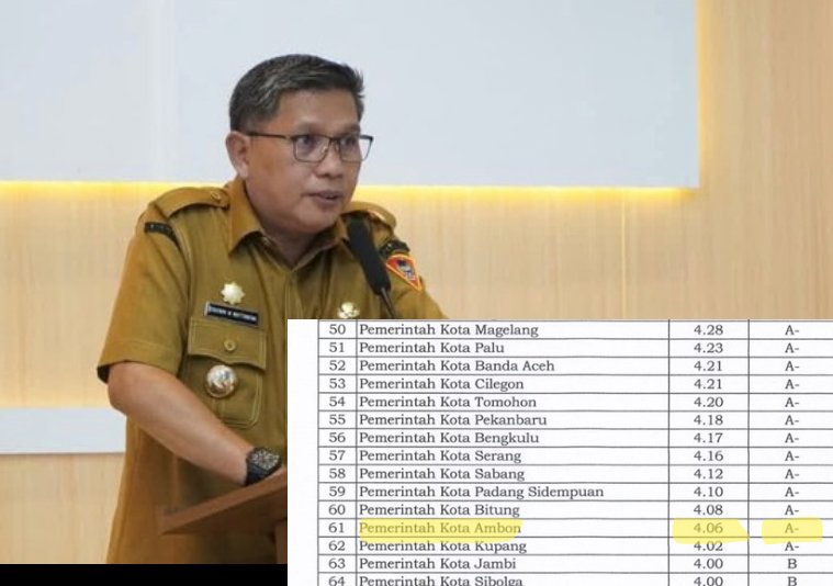 Capaian tersebut menempatkan Ambon sebagai peringkat tertinggi se-Maluku, mengungguli seluruh kabupaten dan kota lainnya dalam hasil Pemantauan dan Evaluasi Kinerja Penyelenggaraan Pelayanan Publik (PEKPPP) tahun 2025.