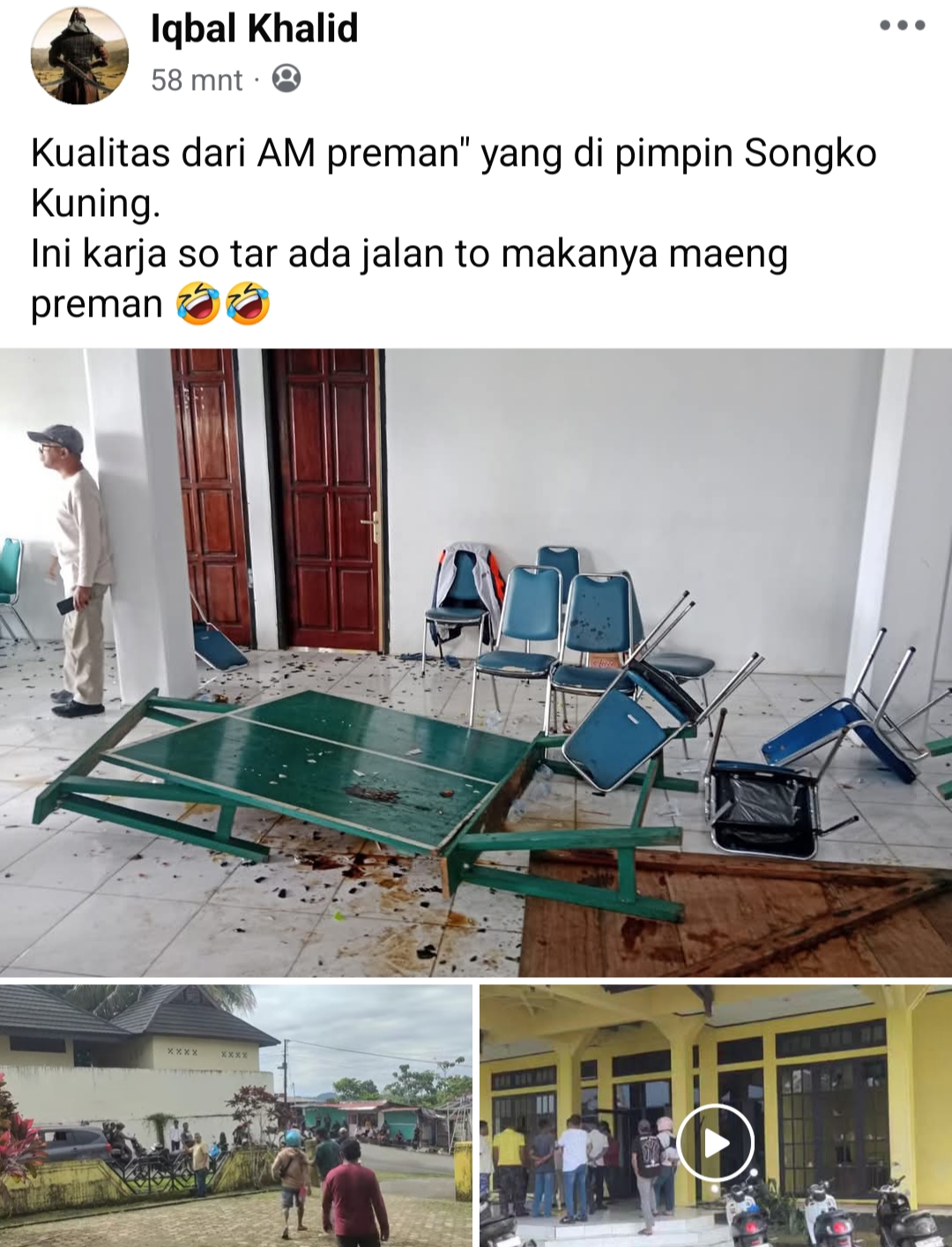 Pada caption unggahannya, terdapat narasi yang diduga sejumlah oknum tersebut mengarah ke kelompok AM dengan pemimpin aksi adalah Songko Kuning.