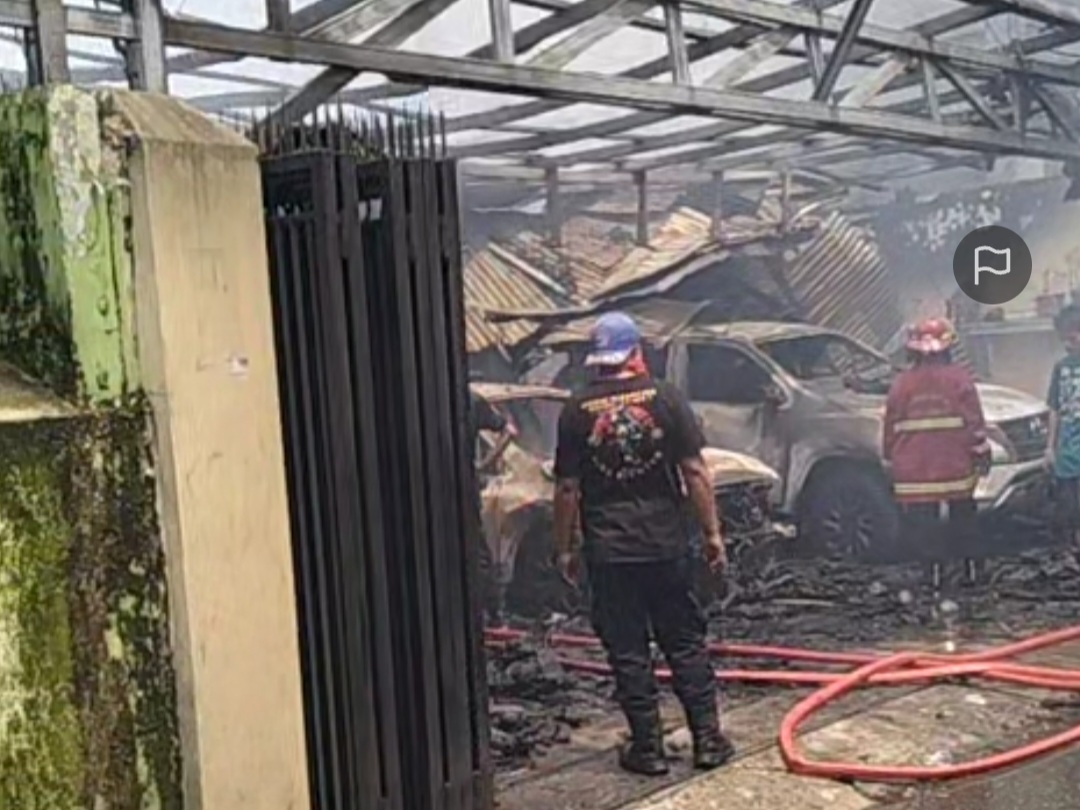 AMBON, BABETO.ID – Kebakaran didepan hotel Manise, kota Ambon, mengakibatkan satu rumah dan tiga unit mobil hangus terbakar.