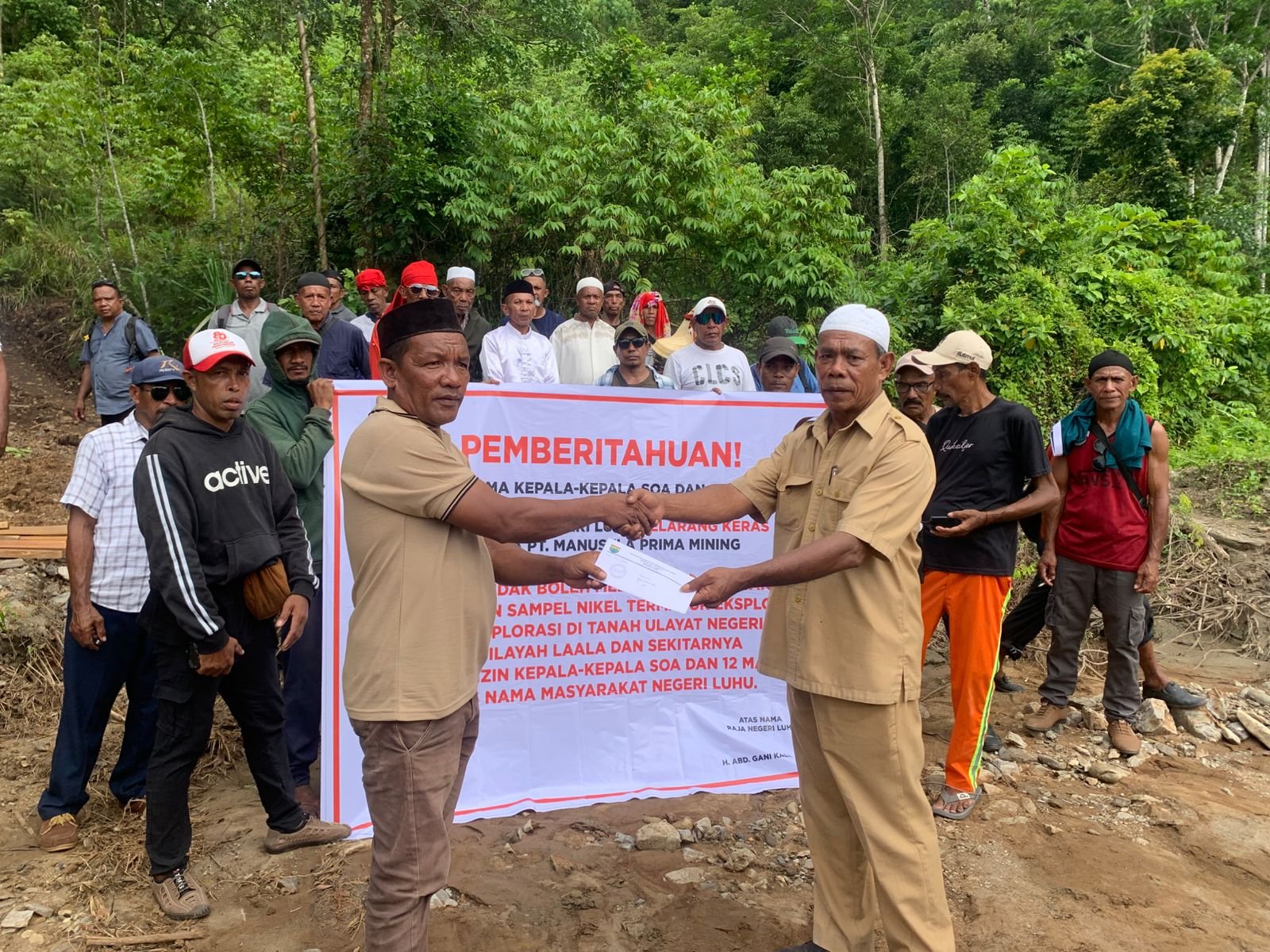 Dalam pernyataan bersama, masyarakat adat menolak aktivitas PT Manusela Prima Mining (MPM) yang dinilai melakukan pengambilan sampel nikel hingga rencana eksplorasi dan eksploitasi tanpa izin resmi dari pihak adat maupun pemerintah negeri.