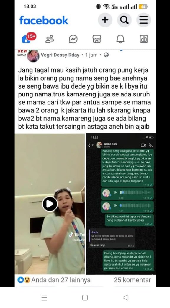 “Jangan karena mau kasih jatuh pekerjaan beta (saya), lalu nama baik beta dikasih rusak. Se (kamu) tidak bawa nama ibu Dede yang bawa se ke Libya itu, tapi kenapa beta yang dibawa-bawa,” tulis Dessy dalam unggahan tersebut.