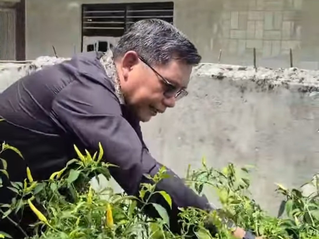 AMBON, BABETO.ID – Wali Kota Ambon, Bodewin Melkias Wattimena, memanen cabai yang ditanam di halaman rumahnya dengan menggunakan polibag, pada Minggu (1/3/2026).